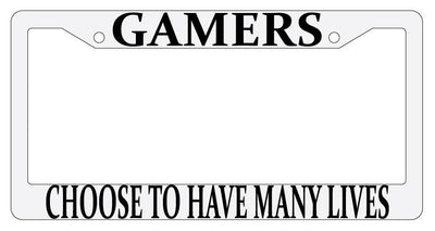 Gamers Choose To Have Many Lives White Plastic License Plate Frame MMO Mod-GRAPH9856236-717