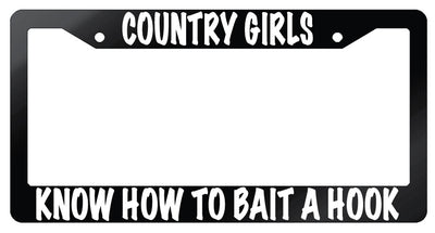 Country Girls Know How To Bait A Hook Glossy Black Plastic License Plate Frame Mod-GRAPH9856236-7397