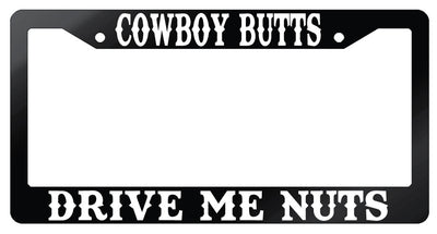 Cowboy Butts Drive Me Nuts Design 2A Black METAL License Plate Frame Mod-GRAPH9856236-9594