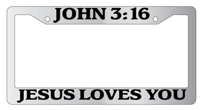 Chrome Plastic License Plate Frame John 3:16 Jesus Loves You Design 2A Mod-GRAPH9856236-4679