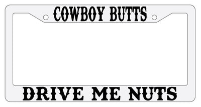 Cowboy Butts Drive Me Nuts Design 2A White Plastic License Plate Frame Mod-GRAPH9856236-3667