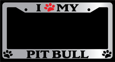 Chrome METAL MOTORCYCLE License Plate Frame I HEART MY (PAW) PIT BULL 504 Mod-GRAPH9856236-10223