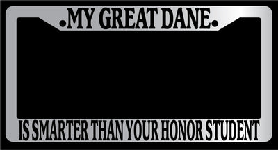 Chrome METAL License Plate MY GREAT DANE IS SMARTER THAN YOUR HONOR STUDENT 413 Mod-GRAPH9856236-9994