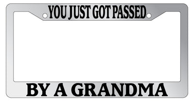 Chrome METAL License Plate Frame YOU JUST GOT PASSED BY A GRANDMA Mod-GRAPH9856236-9769
