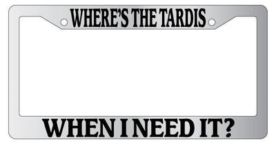 Chrome METAL License Plate Frame WHERES THE TARDIS WHEN I NEED IT? Mod-GRAPH9856236-9452