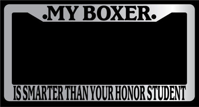 Chrome METAL License Plate MY BOXER IS SMARTER THAN YOUR HONOR STUDENT 310 Mod-GRAPH9856236-9982