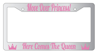 Chrome Metal Move Over Princess Here Comes The Queen License Plate Frame Auto Mod-GRAPH9856236-9739