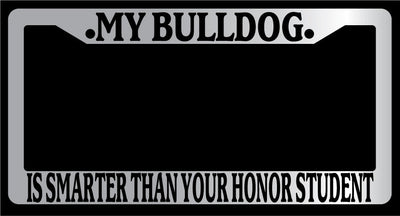 Chrome METAL License Plate MY BULLDOG IS SMARTER THAN YOUR HONOR STUDENT 317 Mod-GRAPH9856236-9983