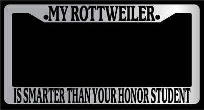 Chrome METAL License Plate MY ROTTWEILER IS SMARTER THAN YOUR HONOR STUDENT 552 Mod-GRAPH9856236-9996