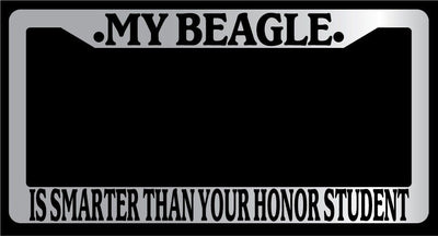 Chrome METAL License Plate MY BEAGLE IS SMARTER THAN YOUR HONOR STUDENT 279 Mod-GRAPH9856236-9980