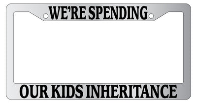 Chrome METAL License Plate Frame WE'RE SPENDING OUR KIDS INHERITANCE Mod-GRAPH9856236-9444