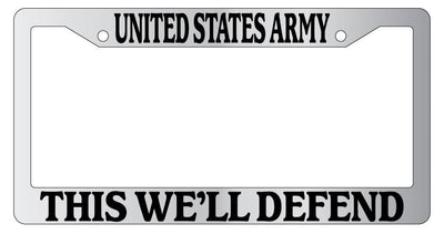 Chrome METAL License Plate Frame UNITED STATES ARMY THIS WE'LL DEFEND 213 Mod-GRAPH9856236-8955