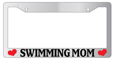 Chrome METAL License Plate Frame SWIMMING MOM Auto Accessory Mod-GRAPH9856236-8011