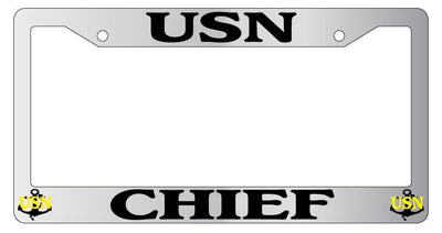 Chrome METAL License Plate Frame USN CHIEF (ANCHORS) Auto Accessory Mod-GRAPH9856236-8963