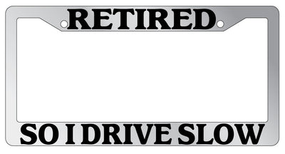 Chrome METAL License Plate Frame RETIRED SO I DRIVE SLOW Auto Accessory Mod-GRAPH9856236-9389