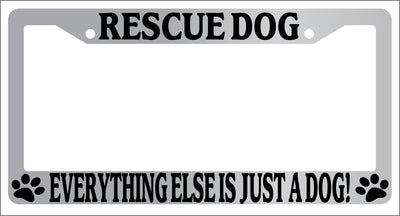 Chrome METAL License Plate Frame RESCUE DOG EVERYTHING ELSE IS JUST A DOG! Auto Mod-GRAPH9856236-8337