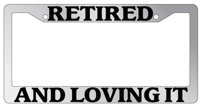 Chrome METAL License Plate Frame RETIRED AND LOVING IT Auto Accessory Mod-GRAPH9856236-9793