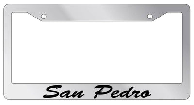 Chrome METAL License Plate Frame San Pedro Cursive Auto Accessory 1101 Mod-GRAPH9856236-8917