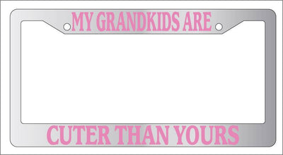Chrome METAL License Plate Frame MY GRANDKIDS ARE CUTER THAN YOURS (PINK) Mod-GRAPH9856236-9234