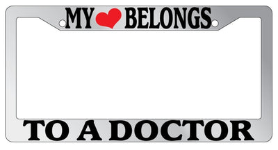 Chrome METAL License Plate Frame MY HEART BELONGS TO A DOCTOR Auto Accessory Mod-GRAPH9856236-8265