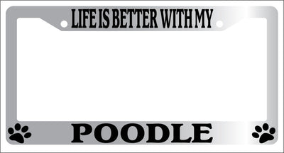 Chrome METAL License Plate Frame LIFE IS BETTER WITH MY POODLE Auto 518 Mod-GRAPH9856236-9123