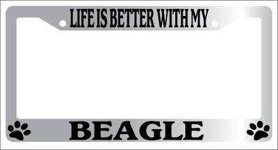 Chrome METAL License Plate Frame LIFE IS BETTER WITH MY BEAGLE Auto Accessory Mod-GRAPH9856236-9106