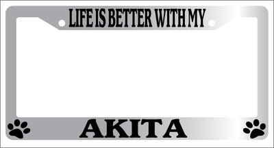 Chrome METAL License Plate Frame LIFE IS BETTER WITH MY AKITA Auto Accessory 239 Mod-GRAPH9856236-9104