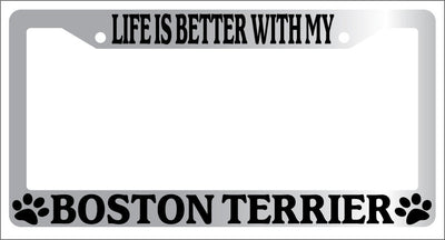 Chrome METAL License Plate Frame LIFE IS BETTER WITH MY BOSTON TERRIER 303 Mod-GRAPH9856236-9105
