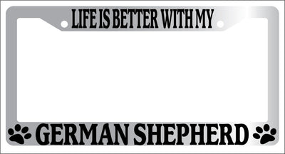Chrome METAL License Plate Frame LIFE IS BETTER WITH MY GERMAN SHEPHERD 398 Mod-GRAPH9856236-9102