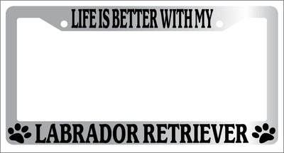 Chrome METAL License Plate Frame LIFE IS BETTER WITH MY LABRADOR RETRIEVER 446 Mod-GRAPH9856236-9120
