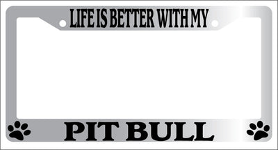 Chrome METAL License Plate Frame LIFE IS BETTER WITH MY PITBULL Auto 504 Mod-GRAPH9856236-9118