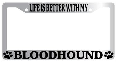 Chrome METAL License Plate Frame LIFE IS BETTER WITH MY BLOODHOUND 291 Mod-GRAPH9856236-9107
