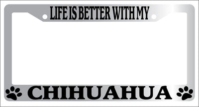 Chrome METAL License Plate Frame LIFE IS BETTER WITH MY CHIHUAHUA -329 Mod-GRAPH9856236-9108