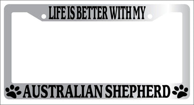 Chrome METAL License Plate Frame LIFE IS BETTER WITH MY AUSTRALIAN SHEPHERD 264 Mod-GRAPH9856236-9100