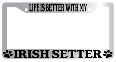 Chrome METAL License Plate Frame LIFE IS BETTER WITH MY IRISH SETTER 428 Mod-GRAPH9856236-9114