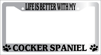 Chrome METAL License Plate Frame LIFE IS BETTER WITH MY COCKER SPANIEL -336 Mod-GRAPH9856236-9125