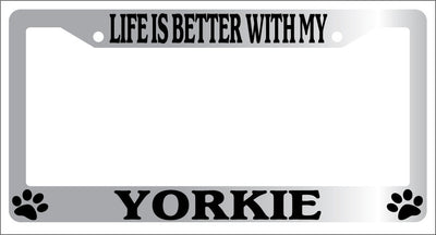 Chrome METAL License Plate Frame LIFE IS BETTER WITH MY YORKIE Accessory 612 Mod-GRAPH9856236-9128