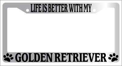 Chrome METAL License Plate Frame LIFE IS BETTER WITH MY GOLDEN RETRIEVER 404 Mod-GRAPH9856236-9115