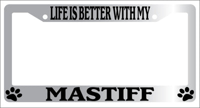 Chrome METAL License Plate Frame LIFE IS BETTER WITH MY MASTIFF Auto 464 Mod-GRAPH9856236-9117