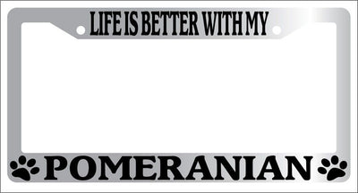 Chrome METAL License Plate Frame LIFE IS BETTER WITH MY POMERANIAN 511 Mod-GRAPH9856236-9122