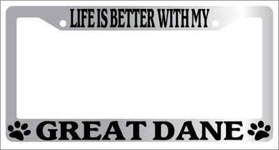 Chrome METAL License Plate Frame LIFE IS BETTER WITH MY GREAT DANE 412 Mod-GRAPH9856236-9112