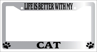 Chrome METAL License Plate Frame LIFE IS BETTER WITH MY CAT Auto Accessory -325 Mod-GRAPH9856236-9110