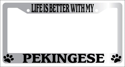 Chrome METAL License Plate Frame LIFE IS BETTER WITH MY PEKINGESE Auto 494 Mod-GRAPH9856236-9119