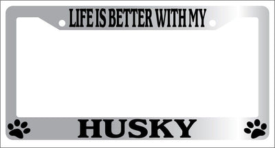 Chrome METAL License Plate Frame LIFE IS BETTER WITH MY HUSKY Auto Accessory 424 Mod-GRAPH9856236-9113