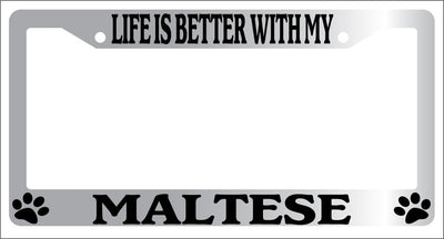 Chrome METAL License Plate Frame LIFE IS BETTER WITH MY MALTESE Auto 462 Mod-GRAPH9856236-9116