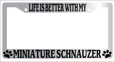 Chrome METAL License Plate Frame LIFE IS BETTER WITH MY MINIATURE SCHNAUZER 471 Mod-GRAPH9856236-9121