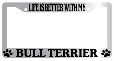 Chrome METAL License Plate Frame LIFE IS BETTER WITH MY BULL TERRIER -320 Mod-GRAPH9856236-9101