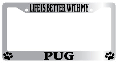 Chrome METAL License Plate Frame LIFE IS BETTER WITH MY PUG Auto Accessory Mod-GRAPH9856236-9124