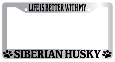 Chrome METAL License Plate Frame LIFE IS BETTER WITH MY SIBERIAN HUSKY 574 Mod-GRAPH9856236-9145
