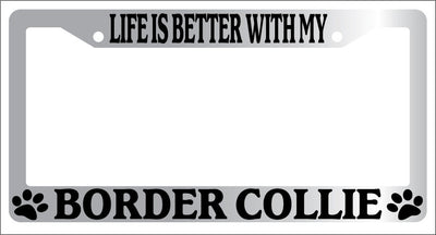 Chrome METAL License Plate Frame LIFE IS BETTER WITH MY BORDER COLLIE 296 Mod-GRAPH9856236-9103
